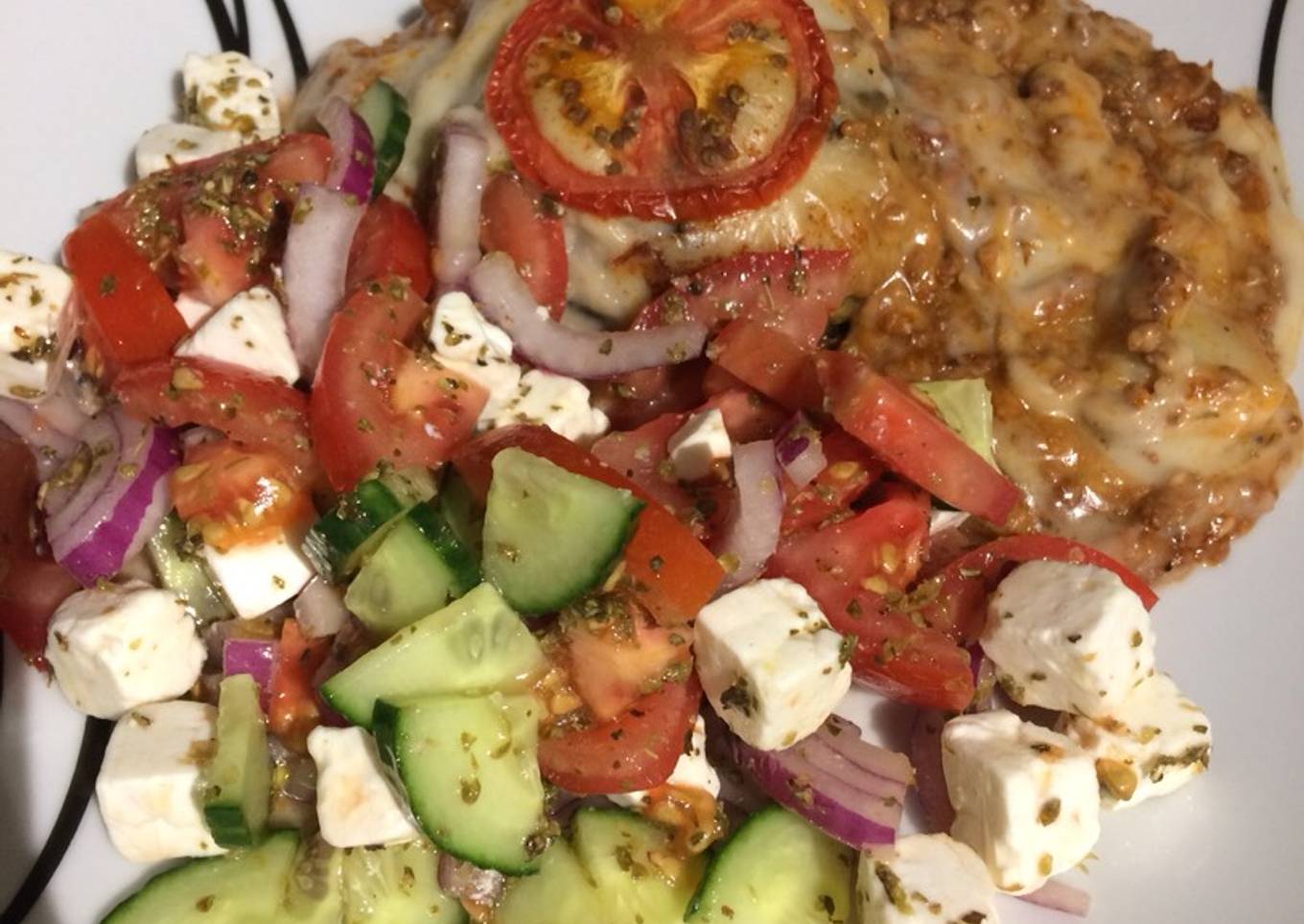 A lovely Greek inspired bake with aubergine 🍆 and lamb finished with a decadent bechamel sauce