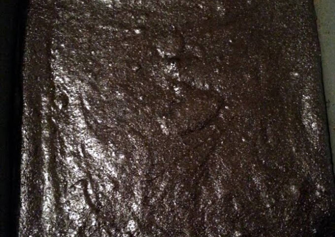 - I use a square pan- spray bottom and sides with Pam. Lightly dust with cocoa powder (this makes it very easy to remove from pan!)